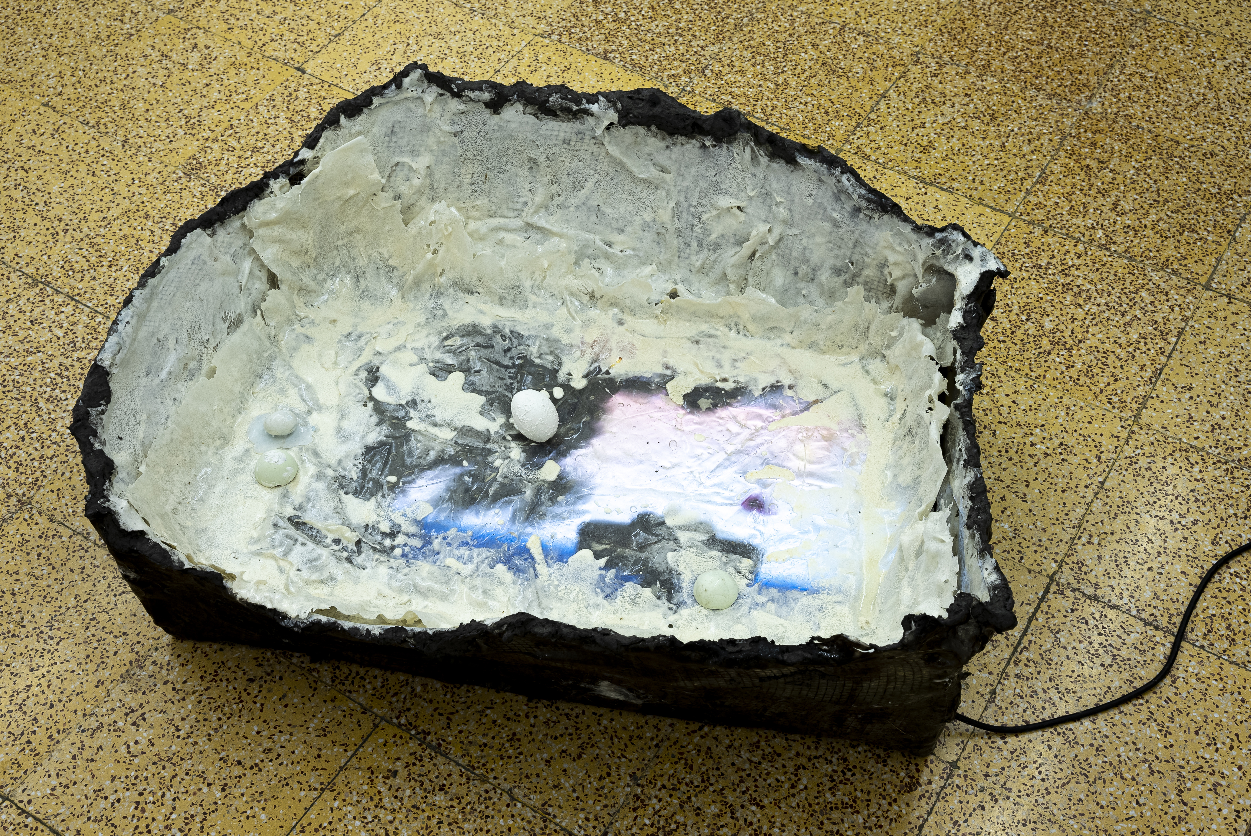 metal, fiberglass, celluclay, television, mesh, plaster, chicken and quail eggs